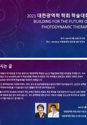 제 19회 대한광역학 학회 온라인 년차학술대회 개최 (온라인) 안내일시: 2021년 8월 28일 8:50~13:30프로그램: 첨부파일 참조참가비: 무료참가방법: 학회사무국 (73951@ncc.re.kr)로 소속, 직위, 성명을 알려주시면, 줌링크와 비밀번호를 발송해 드림.